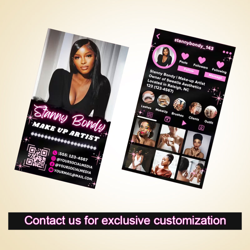 DsgnTouch Glossy Custom Instagram Business Card with QR Code Free Design Template Loyalty Beauty Salon Lash Business Cards