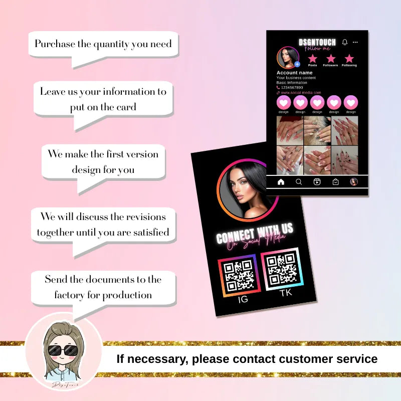 DsgnTouch Pink Marble QR Social Media Card