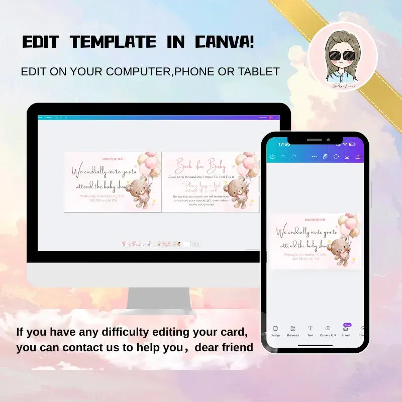 Its a Girl Invitation: Editable Pink Canva Template